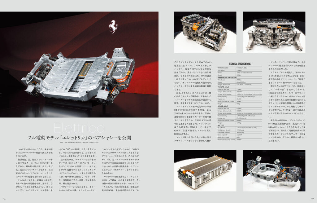 その他、ベアシャシーが先行公開されたフル電動モデル、エレットリカや39億円で落札されたデイトナSP3、イタリアのモデナで開催された、カヴァリーノ・クラシック・モデナ2025も収録。ジウジアーロがデザインしたフェラーリGG50の20周年とともに、ジウジアーロのアトリエを特別取材させていただくなど、多彩な内容と圧倒的なグラフィックで世界からフェラーリカルチャーをお届けしています。